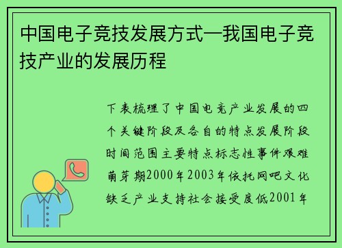 中国电子竞技发展方式—我国电子竞技产业的发展历程